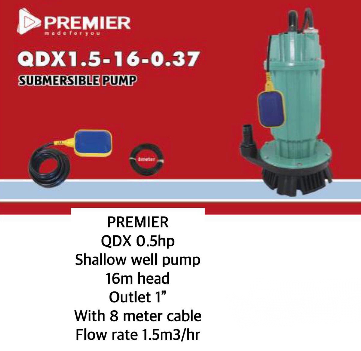 Be the first to review “Premier QDX 0.5HP shallow well pump 16m head” Cancel reply