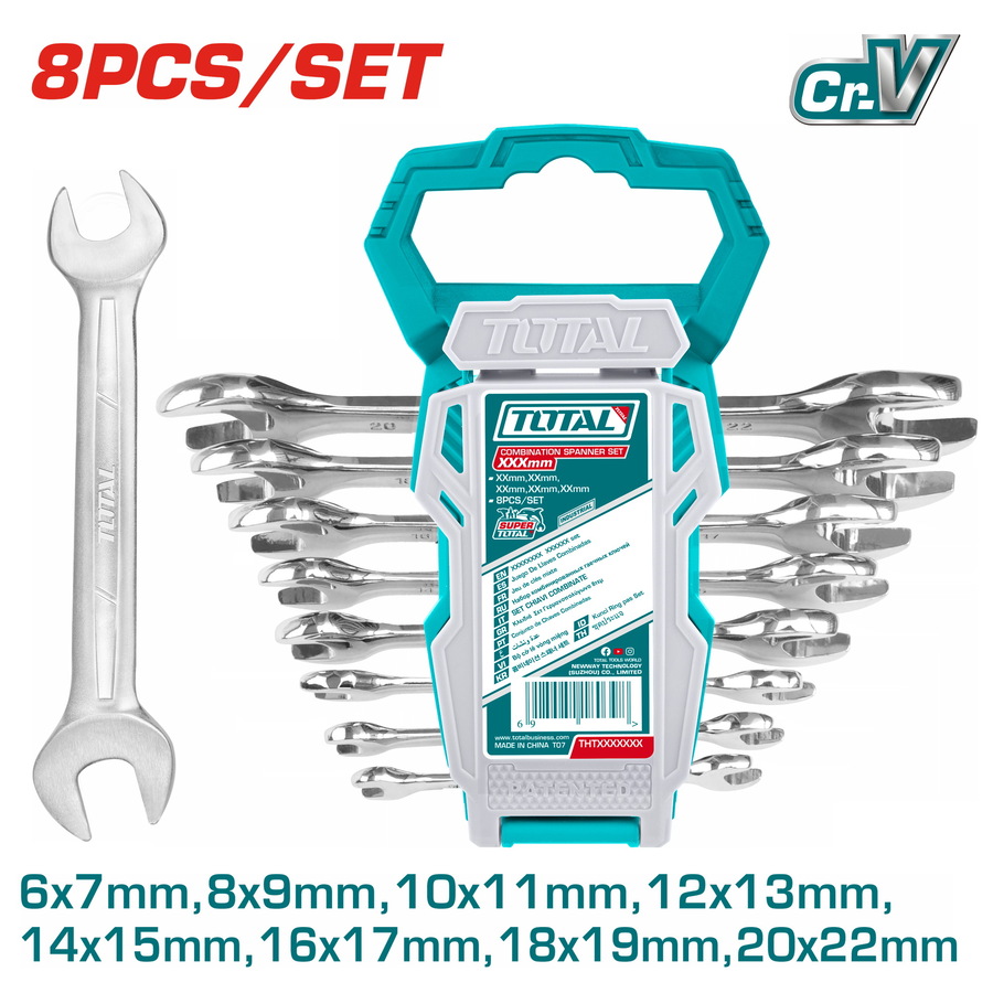 Be the first to review “Total 8pcs double open end spanner set Size:6-22mm” Cancel reply
